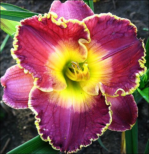 Лилейник Эс Тайм Гоус Бай – красивейшая цветочная культура. Ее глубоко насыщенная, фиолетовая расцветка усиливается в цветовом плане сияющим желто-салатовым горлом. Особый шарм бутону придает золотистая кайма.