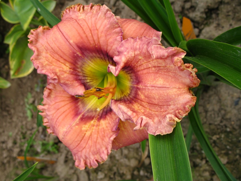 Из разветвленной корневой системы вырастает упругий стебель на высоту около 73 см. Крупные, воронковидные, простые цветки образуются на верхнем конце побега. Розово-сиреневые доли шестираздельного венчика имеют сильный изгиб, внешние закручиваются к стеблю. Волнистые лепестки в центре украшает фигурный фиолетовый глаз и зеленовато-желтое горло. Листва линейная, плотная, прикорневая.