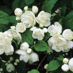 Чубушник Philadelphus ‘Virginal’ красивоцветущий лиственный кустарник с густой кроной 2-3м высотой. Сорт создан во Франции. Цветет обильно крупными белыми махровыми цветами, диаметром до 5см, с приятным ароматом. Цветы полностью покрывают ветви. Неприхотлив, быстро отрастает, устойчив к городским условиям. Зимостоек; обильнее цветет на солнце. Высаживают по одному или группами, как для стриженных, так и для свободно растущих живых изгородей. В теплую осень иногда может зацветать повторно. Хорошо смотрится с гортензиями, вейгелами, спиреями. Устойчив к болезням и вредителям.