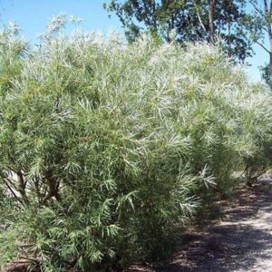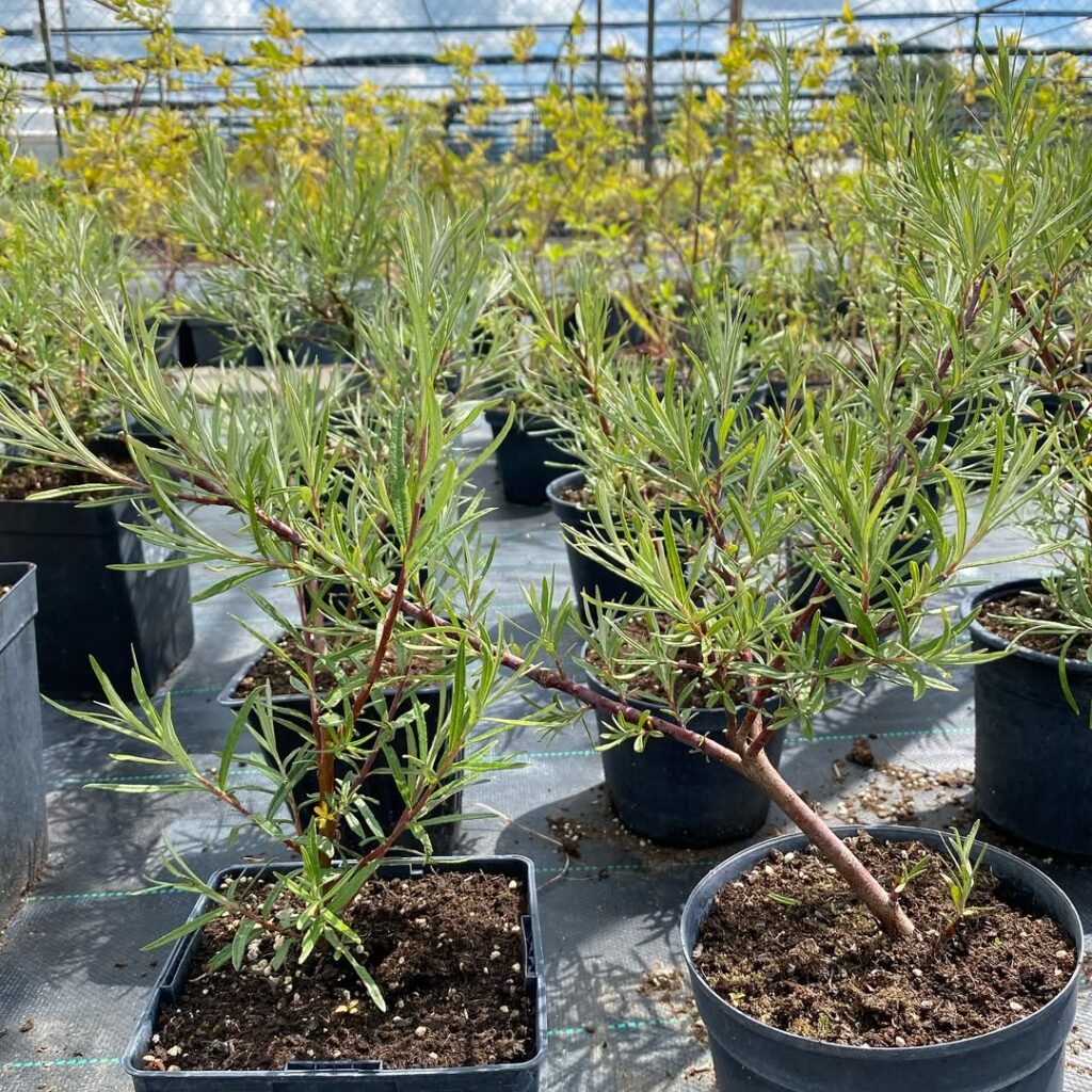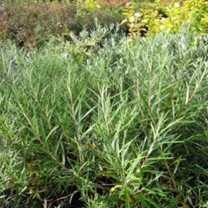 Раскидистый кустарник с оригинальными тонкими листьями, напоминающими листья розмарина. Образует красивую ажурную крону. Темно-зеленые листья с глянцевой поверхностью, на обратной стороне слегка опушенные, серебристые. Осенью приобретают золотисто-желтые оттенки. Устойчивое и неприхотливое растение, отлично подходит для городского озеленения.