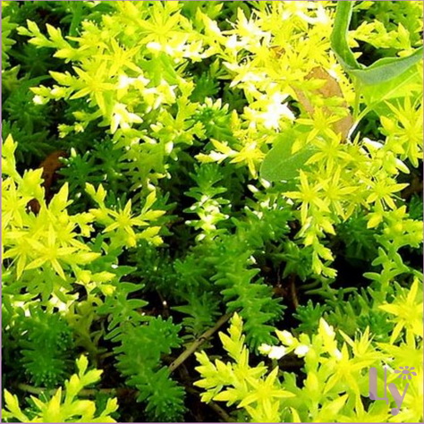 Растение с ползучи корневищем, образующее плотный покров из укореняющихся, приподнимающихся, сильноветвистых побегов. Листья вечнозеленые, сидячие, линейно-шиловидные. Щитковидное соцветие с ярко-желтыми цветками. Цветет с конца июня в течение 25-30 дней.