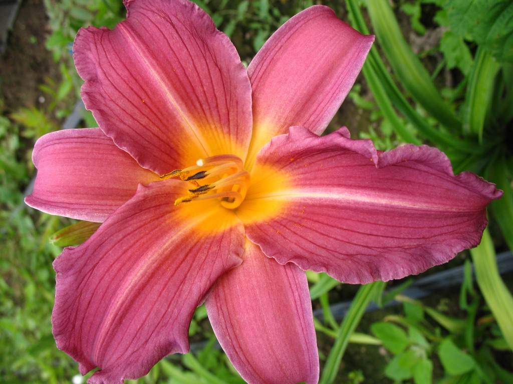 - Цветки широко раскрытые, 13 см, сиреневые, со светлой центральной жилкой. Лепестки сильно отогнутые. Зев желтый. Нежный аромат.